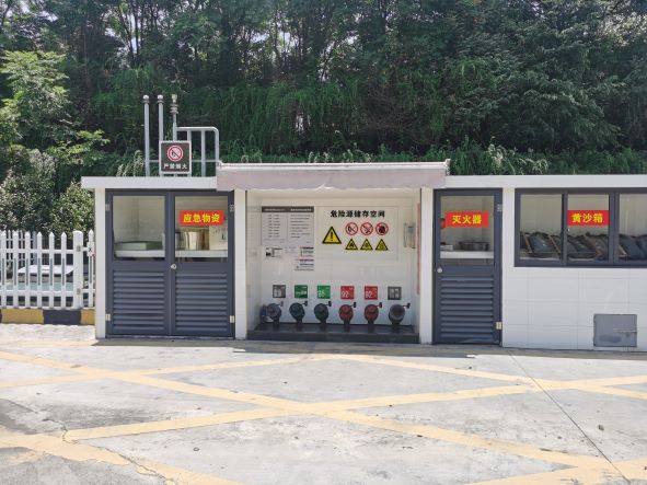 加油區(qū)設(shè)置加油罩棚,罩棚下設(shè)置2臺三油品六槍潛油泵式加油機(jī)(汽油)、1臺單油品四槍潛油加油機(jī)(柴油)、1臺雙油品四槍潛油加油機(jī)(汽油);埋地罐區(qū)設(shè)有5只臥式埋地單層油罐(采用防滲罐池),其中30m3汽油罐4只、30m3柴油罐1只,折算后油罐總?cè)莘e135m3(柴油罐折半計入),根據(jù)《汽車加油加氣加氫站技術(shù)標(biāo)準(zhǔn)》GB50156-2021的相關(guān)規(guī)定,該站屬于二級加油站。加油站已安裝汽油卸油和加油油氣回收系統(tǒng)。